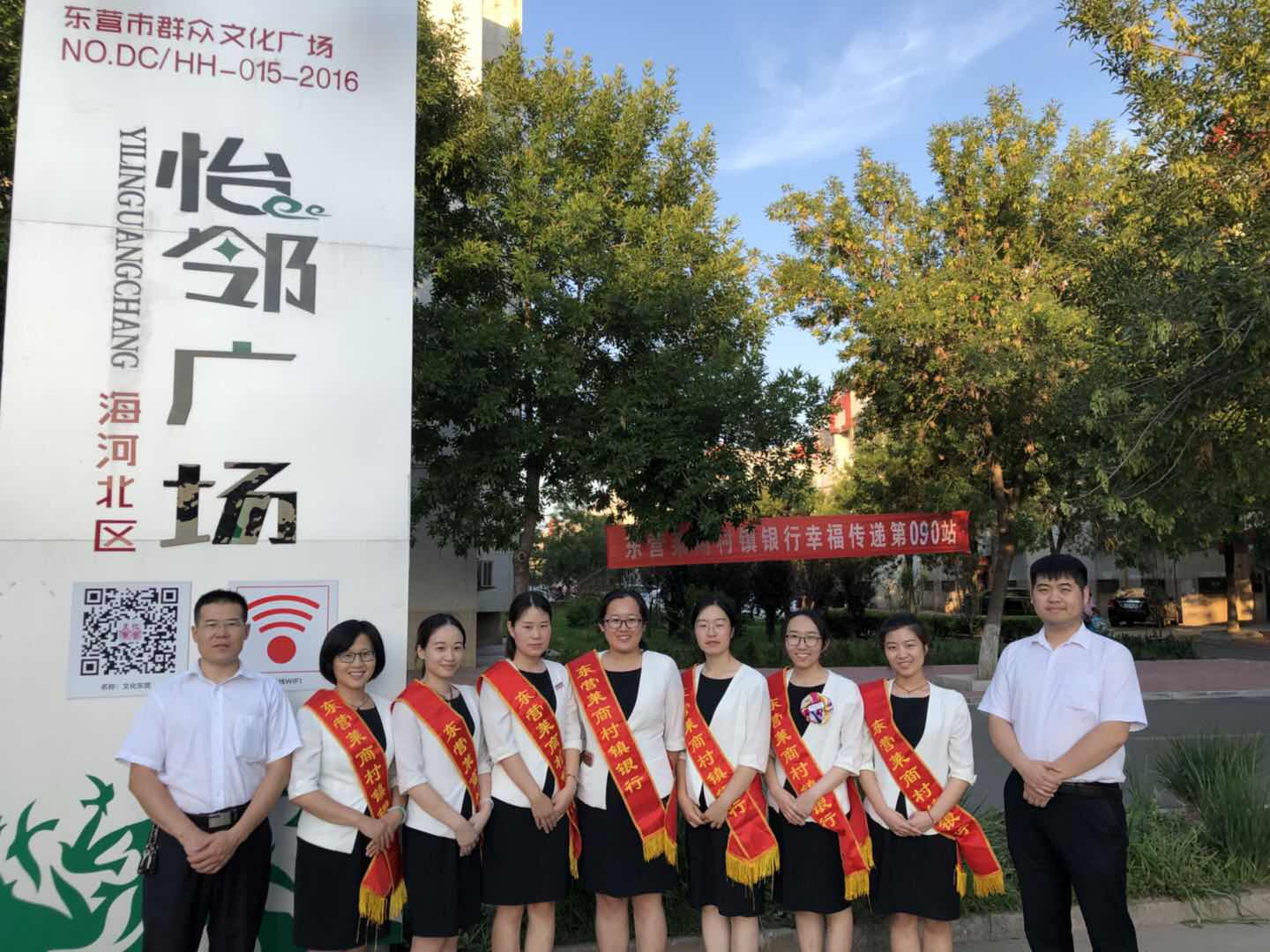 盛夏六月,幸福传递,东营莱商村镇银行海河支行联合辽河社区(海河南、海河北)居委会携手举办了“东营莱商村镇银行幸福传递”第54、90站普惠金融进社区活动。