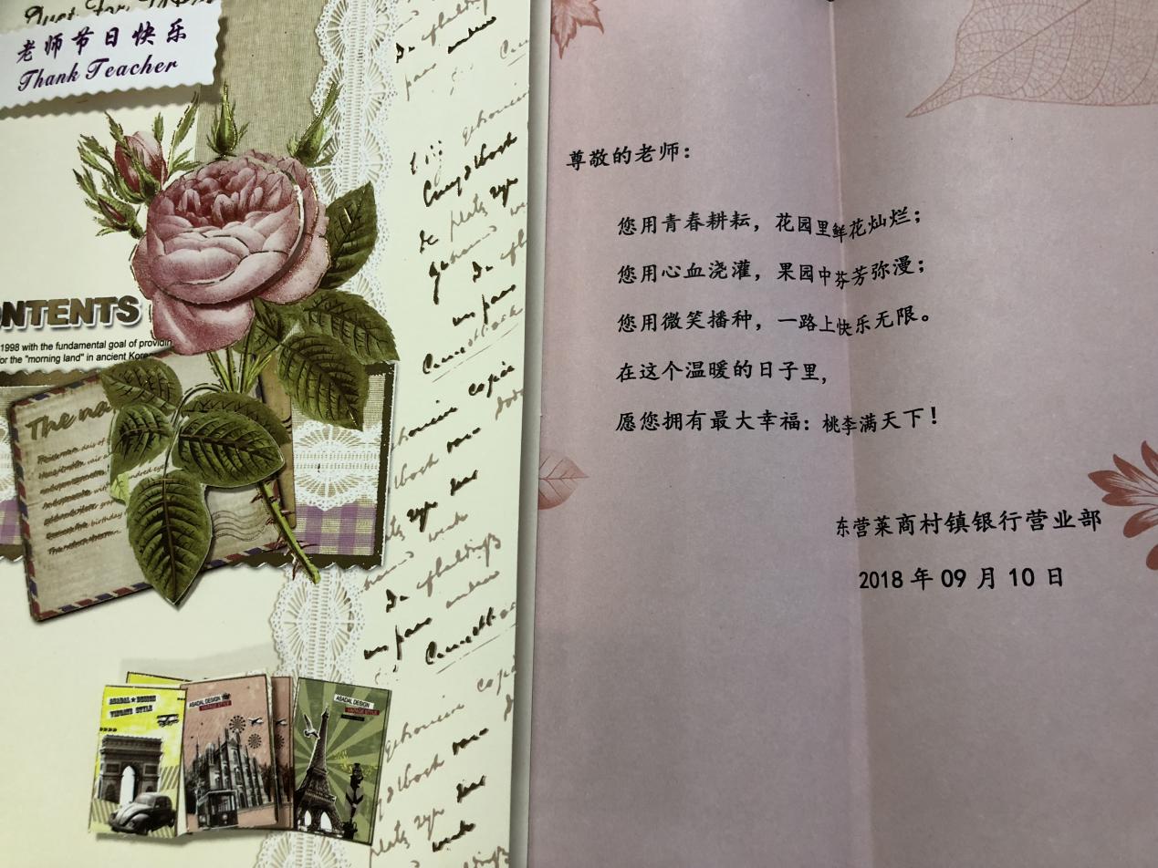 东营莱商村很银行营业部传承东营莱商村镇银行幸福传递活动于9月10日携手明月小区居委会为社区退休老教师送上一份特殊的教师节礼物。